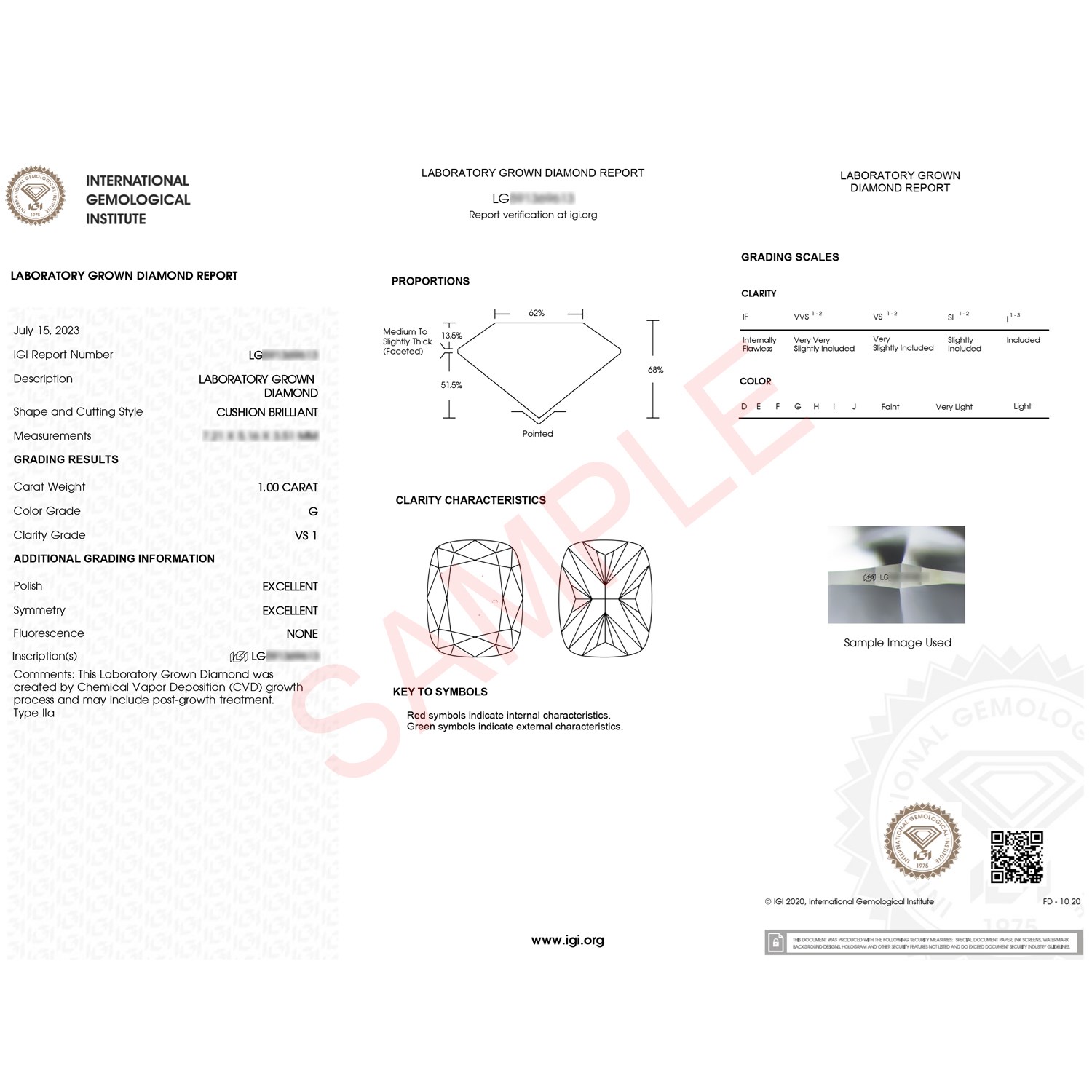 Make your moment truly unforgettable with this elegant 1 carat cushion-cut lab-grown diamond solitaire ring beautifully crafted to reflect the depth and sincerity of your love. IGI certified and graded G color with VS1 clarity, the diamond radiates with exceptional brilliance and trusted quality. Set in a timeless four-prong 14K white gold band, this classic design embodies sophistication, romance, and lasting elegance. Perfect for a proposal, anniversary, or meaningful milestone, this ring is more than a gift it's a symbol of forever.