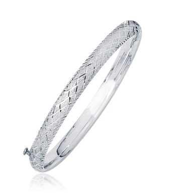 Eye-catching textured finish highlights the geometric diamond pattern style of this bangle. Crafted in 10k yellow and white gold, this comes in sizes 7 inches and 8 inches.