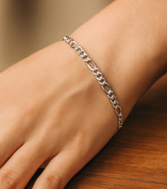 14k White Gold Solid Figaro Bracelet (3.80 mm)