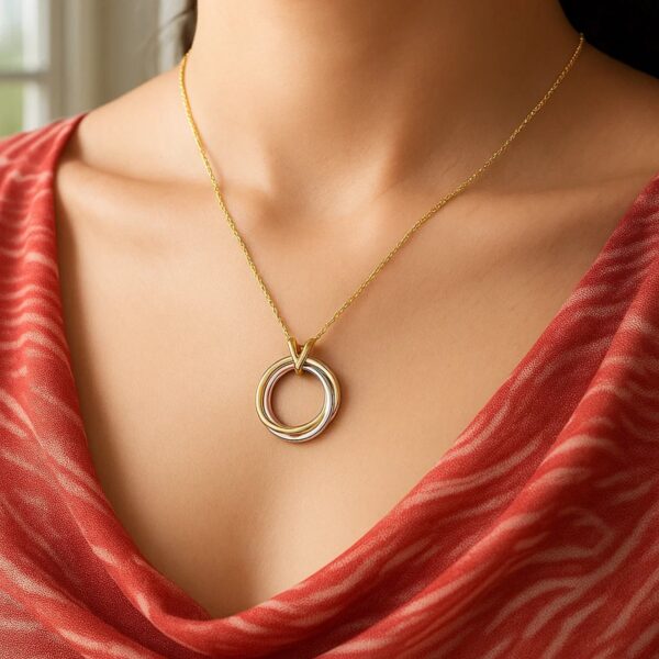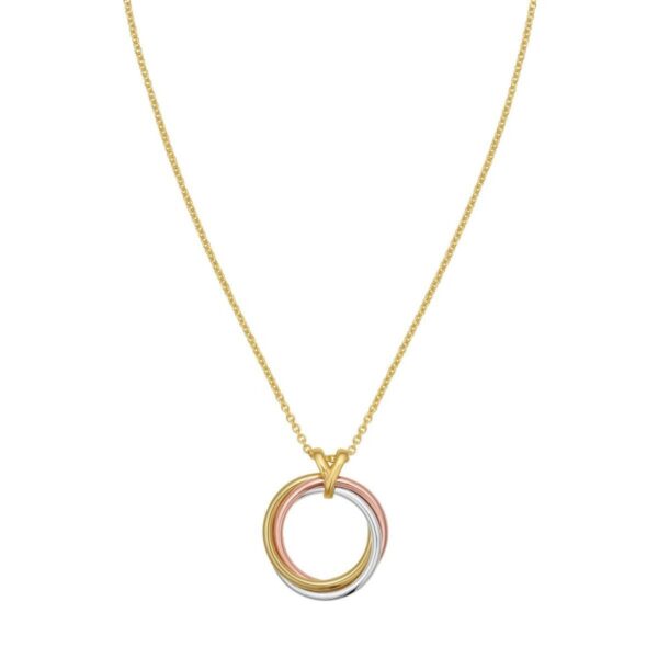 14K Tri Color Gold Interlocking Circle Pendant Necklace