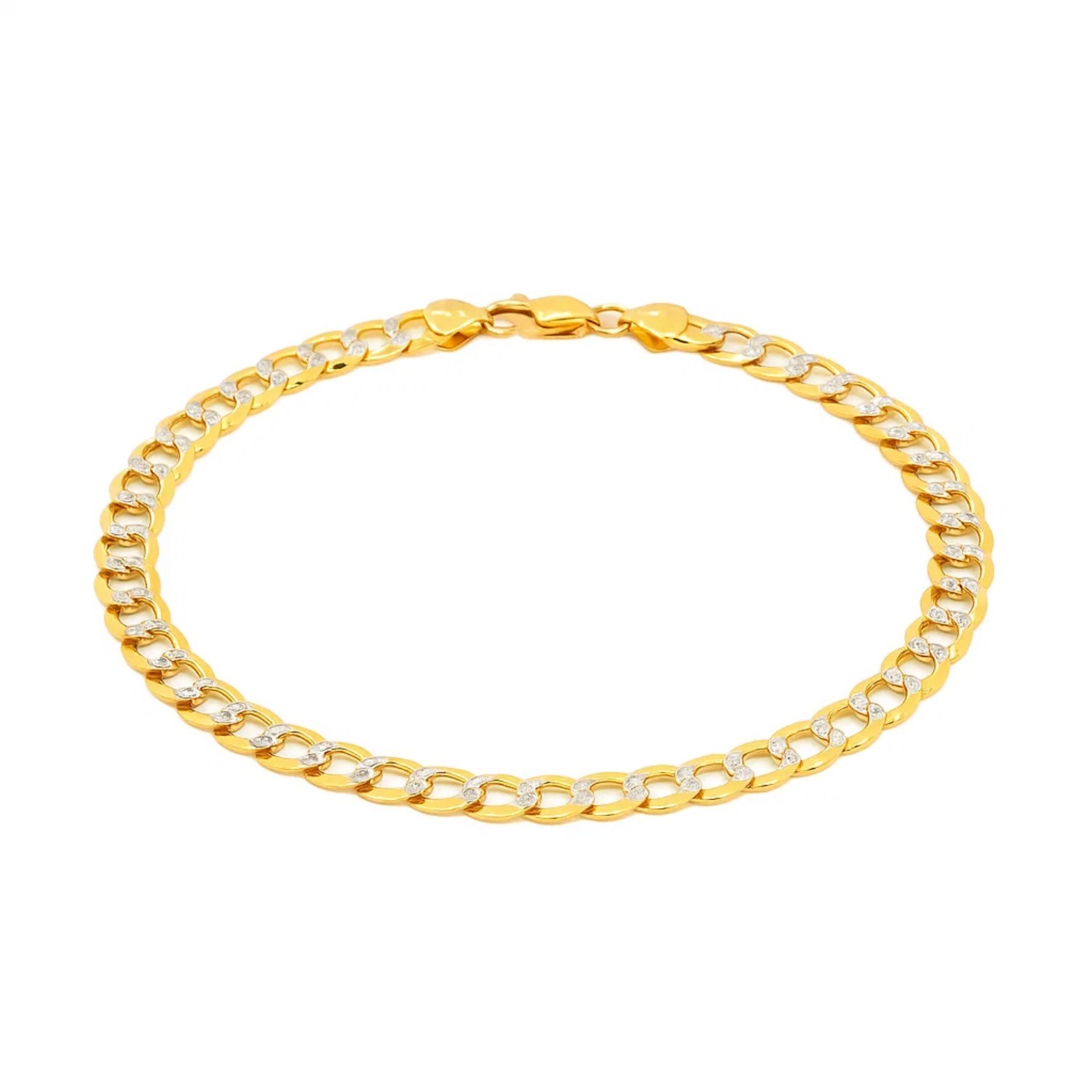 14k Two Tone Gold Pave Curb Bracelet (7.00 mm)