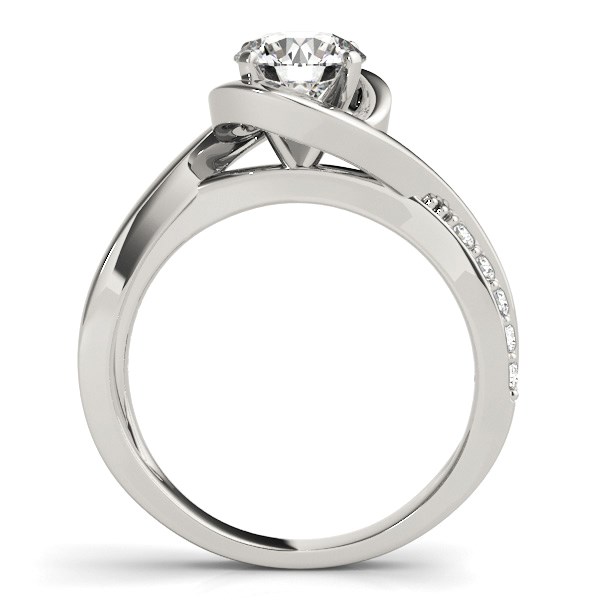 This round bypass style diamond ring features a split shank design with small diamonds down the shank. Beautifully crafted in fine 14k white gold.