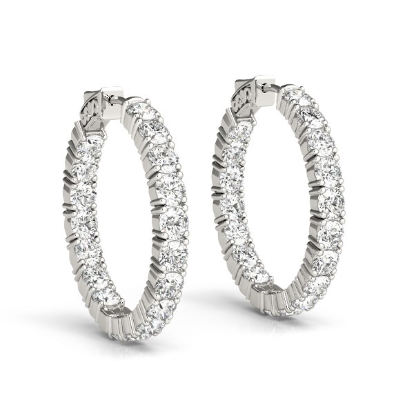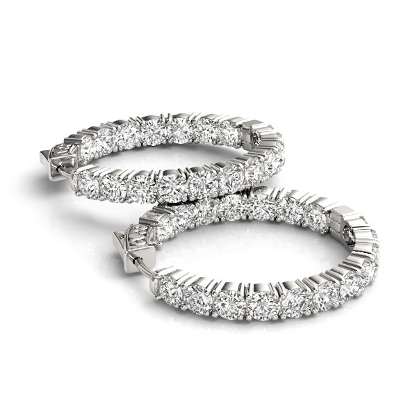 14k White Gold Two Sided Prong Set Diamond Hoop Earrings (3 1/2 cttw)