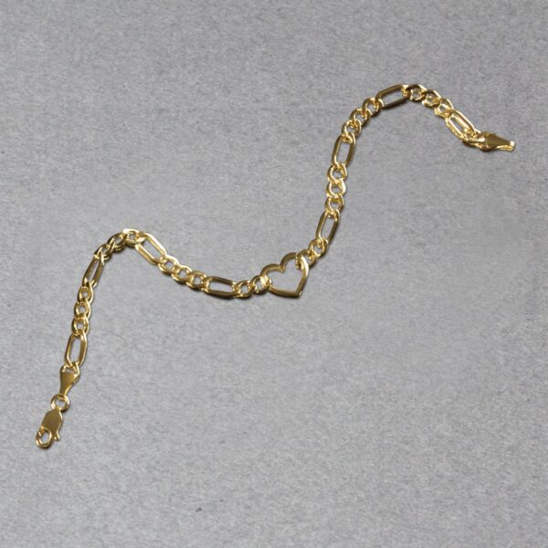 14k Yellow Gold 7 inch Figaro Chain Bracelet with Heart (4.50 mm)