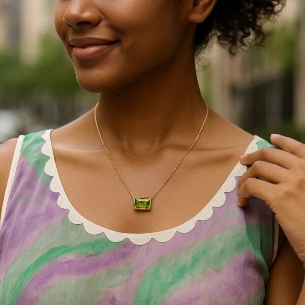 14K Yellow Gold Emerald Cut Peridot Necklace