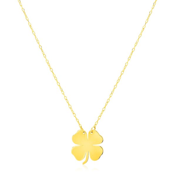 Luck and good fortune will follow you when you wear this breathtakingly polished 14K yellow gold four leaf clover necklace. Necklace is 18 inches long.