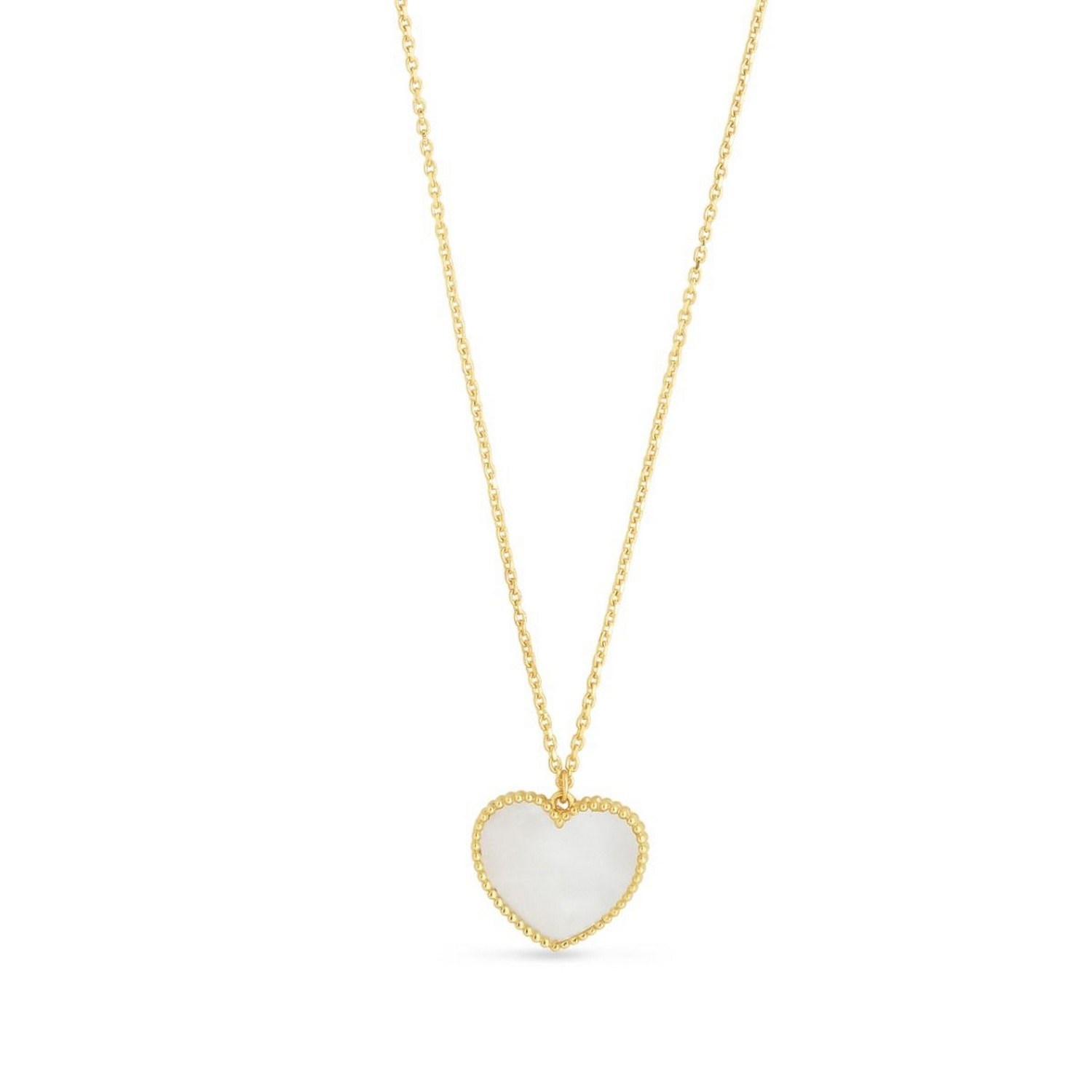 14k Yellow Gold High Polish Heart Pearl Paste Necklace