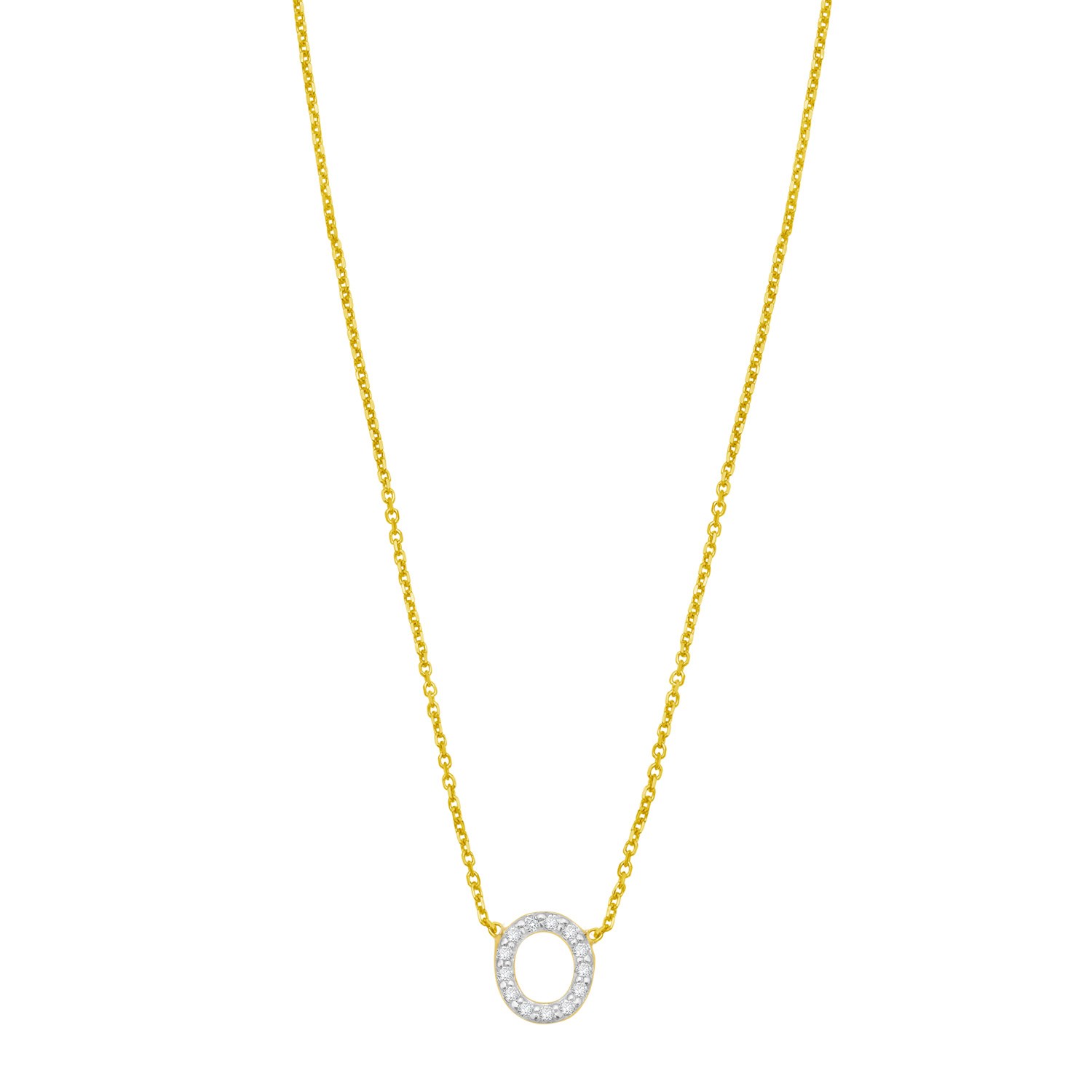 14K Yellow Gold Mini Diamond O Initial Pendant Necklace