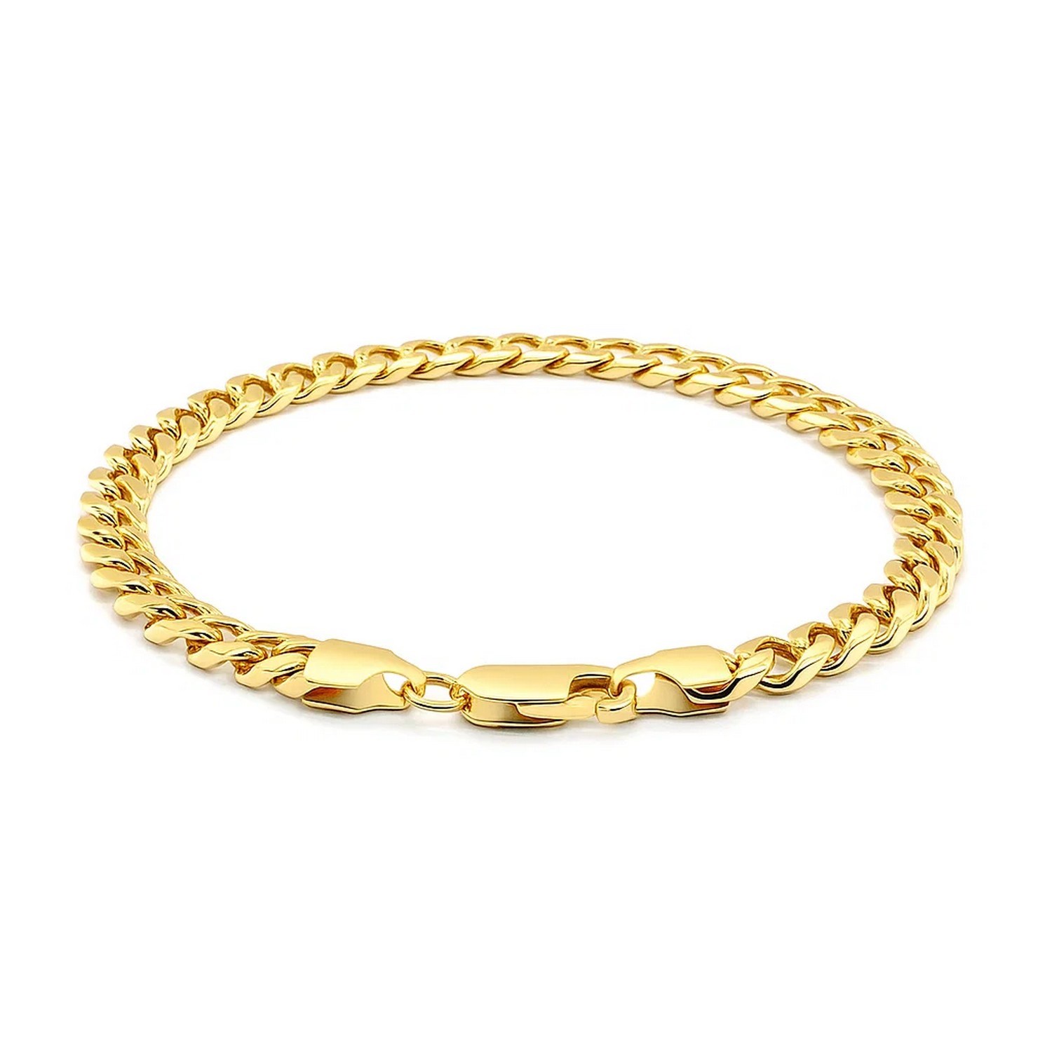 This solid Miami Cuban bracelet comes in 14k yellow gold and has a width of 5.8 millimeters. Secured with a lobster clasp.