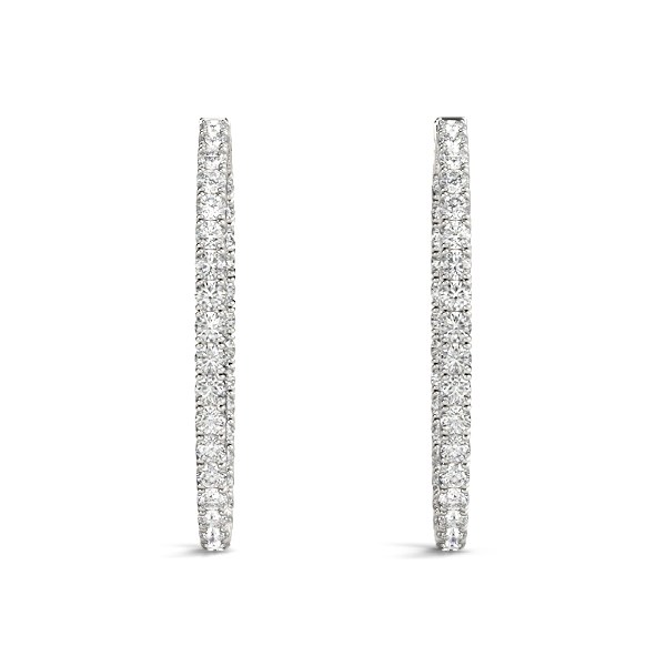 Positively bewitching, these hoop style earrings showcase double sided diamonds in oval outer shape. Crafted in fine 14k white gold and secured with hinge locks.