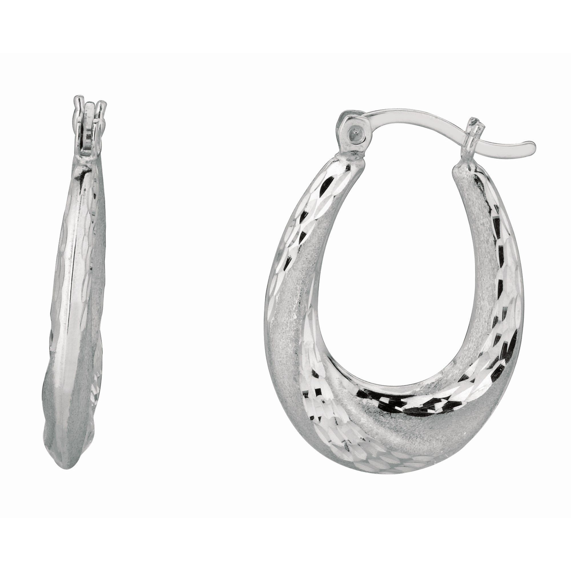 Elegant sterling silver diamond cut and polished twist puffed hoop earrings featuring a shimmering textured design with a radiant finish. The diamond-cut detailing enhances sparkle, while the twisted puffed shape adds depth and sophistication for a timeless, eye-catching look.