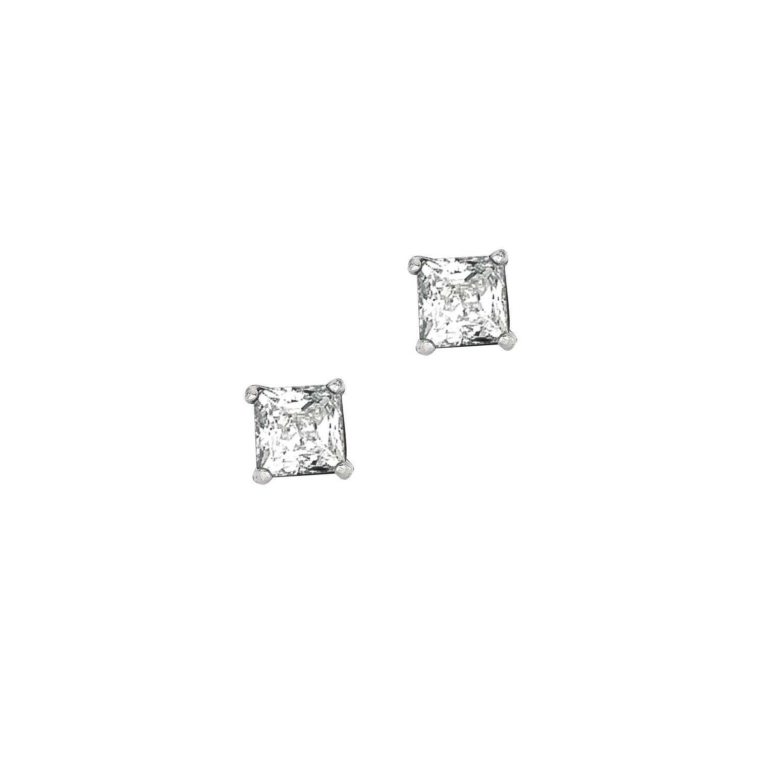 Elegant sterling silver princess CZ stud earrings (5.00 mm) featuring sparkling princess-cut cubic zirconia set in a polished sterling silver frame. Their timeless brilliance and refined design make them perfect for both everyday wear and special occasions.