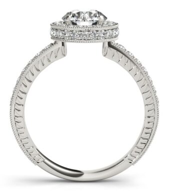 14k White Gold Milgrain Border Diamond Pave Engagement Ring (1 1/2 cttw)