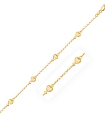14k Yellow Gold Rolo Chain Bracelet with Puffed Heart Stations (3.30 mm)